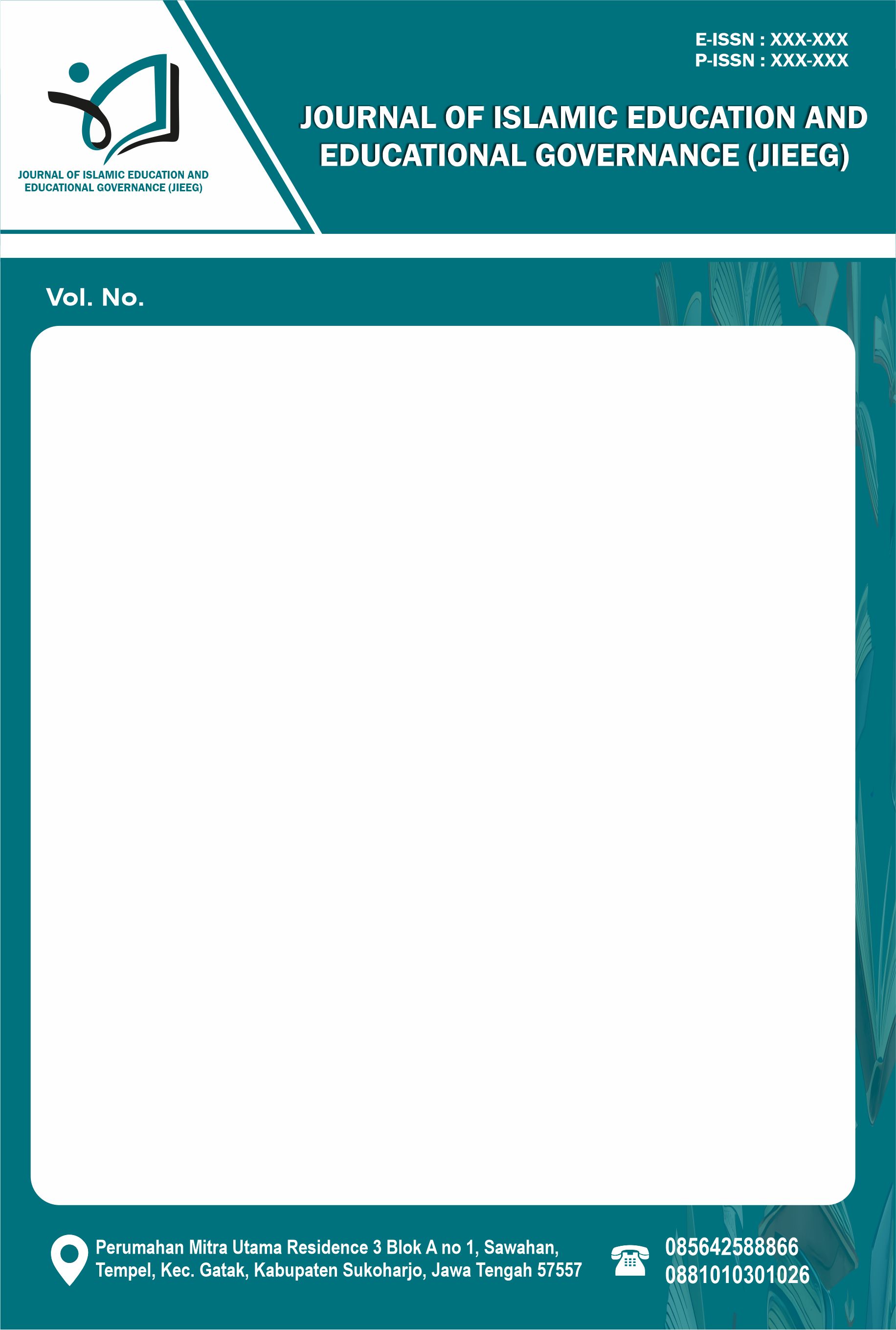 Journal of Islamic Education and Educational Governance (JIEEG) is a journal published by Tahta Media Group. e-ISSN: XXXX-XXXX & p-ISSN: XXXX-XXXX. It is an academic journal first published in 2026. The journal publishes three regular issues each year, scheduled for February, June, and October. This journal is publicly accessible, allowing readers to read, download, copy, distribute, print, or link to the full texts of the articles free of charge without prior permission from the authors or the publisher.