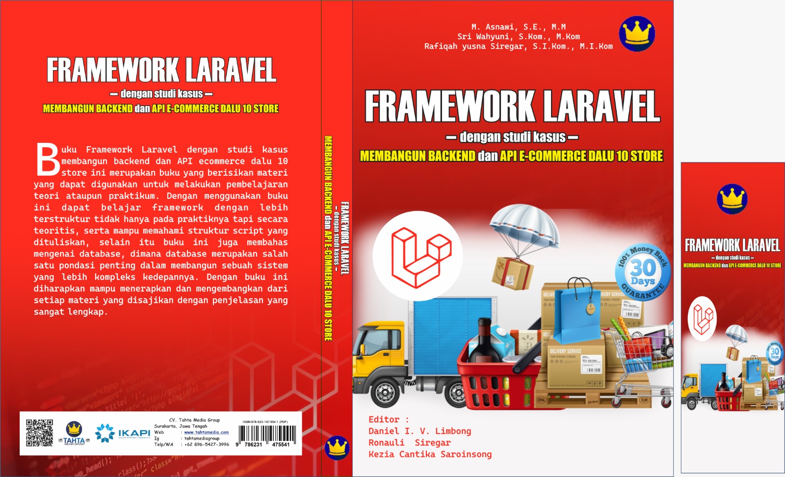 Buku Framework Laravel dengan studi kasus membangun backend dan API ecommerce dalu 10 store ini merupakan buku yang berisikan materi yang dapat digunakan untuk melakukan pembelajaran teori ataupun praktikum. Dengan menggunakan buku ini dapat belajar framework dengan lebih terstruktur tidak hanya pada praktiknya tapi secara teoritis, serta mampu memahami struktur script yang dituliskan, selain itu buku ini juga membahas mengenai database, dimana database merupakan salah satu pondasi penting dalam membangun sebuah sistem yang lebih kompleks kedepannya. Dengan buku ini diharapkan mampu menerapkan dan mengembangkan dari setiap materi yang disajikan dengan penjelasan yang sangat lengkap.