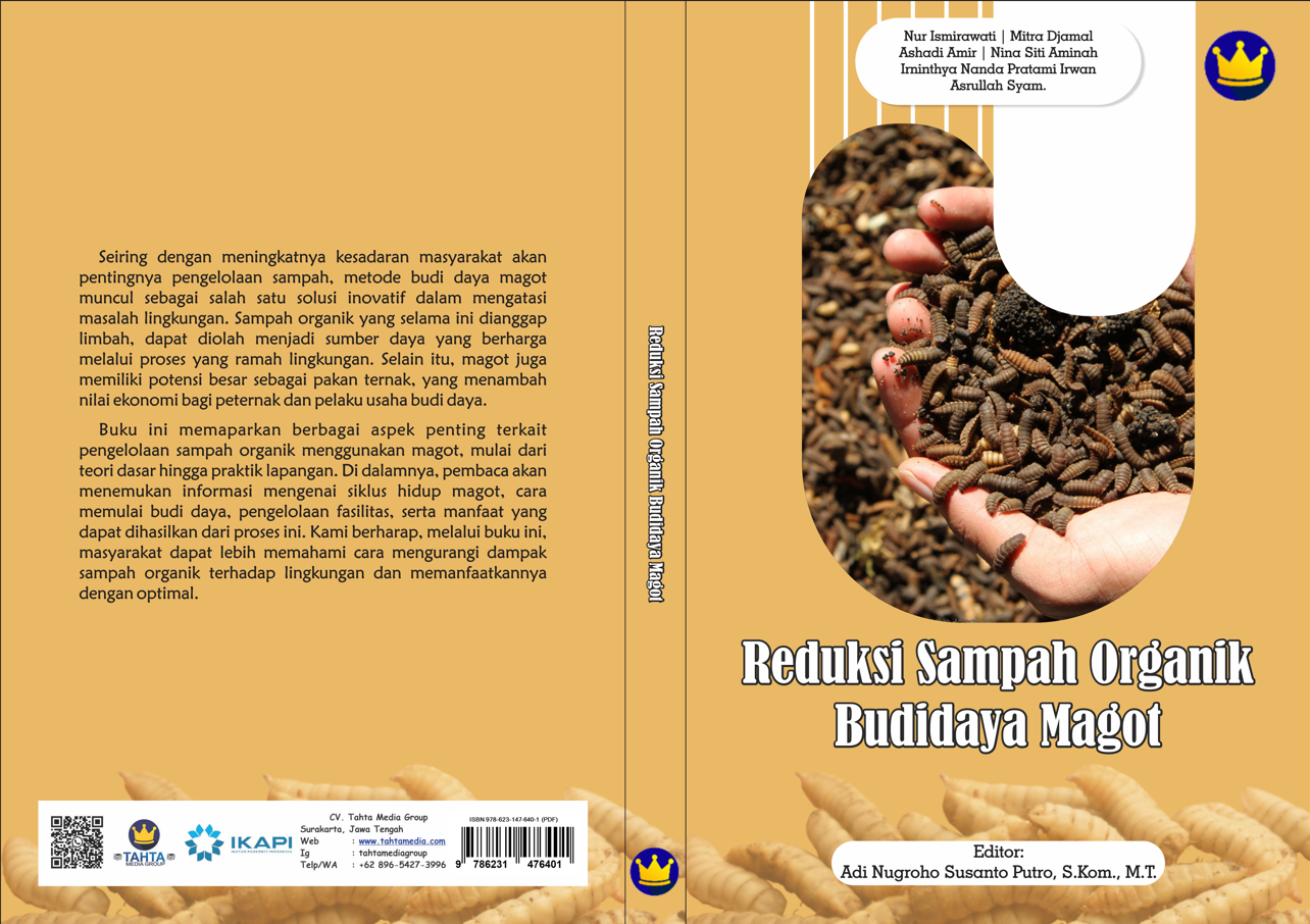 Seiring dengan meningkatnya kesadaran masyarakat akan pentingnya pengelolaan sampah, metode budi daya magot muncul sebagai salah satu solusi inovatif dalam mengatasi masalah lingkungan. Sampah organik yang selama ini dianggap limbah, dapat diolah menjadi sumber daya yang berharga melalui proses yang ramah lingkungan. Selain itu, magot juga memiliki potensi besar sebagai pakan ternak, yang menambah nilai ekonomi bagi peternak dan pelaku usaha budi daya. Buku ini memaparkan berbagai aspek penting terkait pengelolaan sampah organik menggunakan magot, mulai dari teori dasar hingga praktik lapangan. Di dalamnya, pembaca akan menemukan informasi mengenai siklus hidup magot, cara memulai budi daya, pengelolaan fasilitas, serta manfaat yang dapat dihasilkan dari proses ini. Kami berharap, melalui buku ini, masyarakat dapat lebih memahami cara mengurangi dampak sampah organik terhadap lingkungan dan memanfaatkannya dengan optimal.