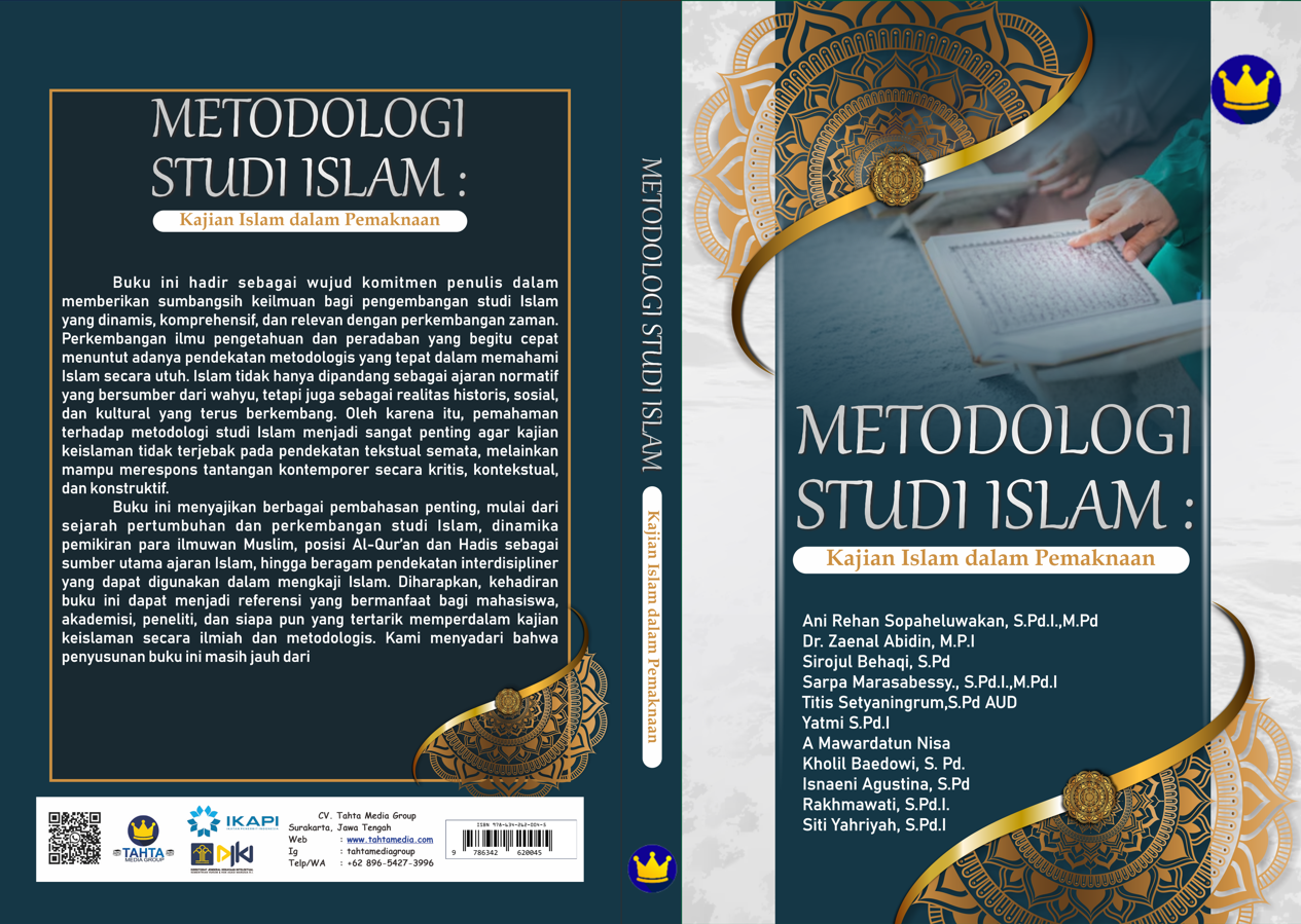 Perkembangan ilmu pengetahuan dan peradaban yang begitu cepat menuntut adanya pendekatan metodologis yang tepat dalam memahami Islam secara utuh. Islam tidak hanya dipandang sebagai ajaran normatif yang bersumber dari wahyu, tetapi juga sebagai realitas historis, sosial, dan kultural yang terus berkembang. Oleh karena itu, pemahaman terhadap metodologi studi Islam menjadi sangat penting agar kajian keislaman tidak terjebak pada pendekatan tekstual semata, melainkan mampu merespons tantangan kontemporer secara kritis, kontekstual, dan konstruktif. Buku ini menyajikan berbagai pembahasan penting, mulai dari sejarah pertumbuhan dan perkembangan studi Islam, dinamika pemikiran para ilmuwan Muslim, posisi Al-Qur’an dan Hadis sebagai sumber utama ajaran Islam, hingga beragam pendekatan interdisipliner yang dapat digunakan dalam mengkaji Islam. Diharapkan, kehadiran buku ini dapat menjadi referensi yang bermanfaat bagi mahasiswa, akademisi, peneliti, dan siapa pun yang tertarik memperdalam kajian keislaman secara ilmiah dan metodologis.