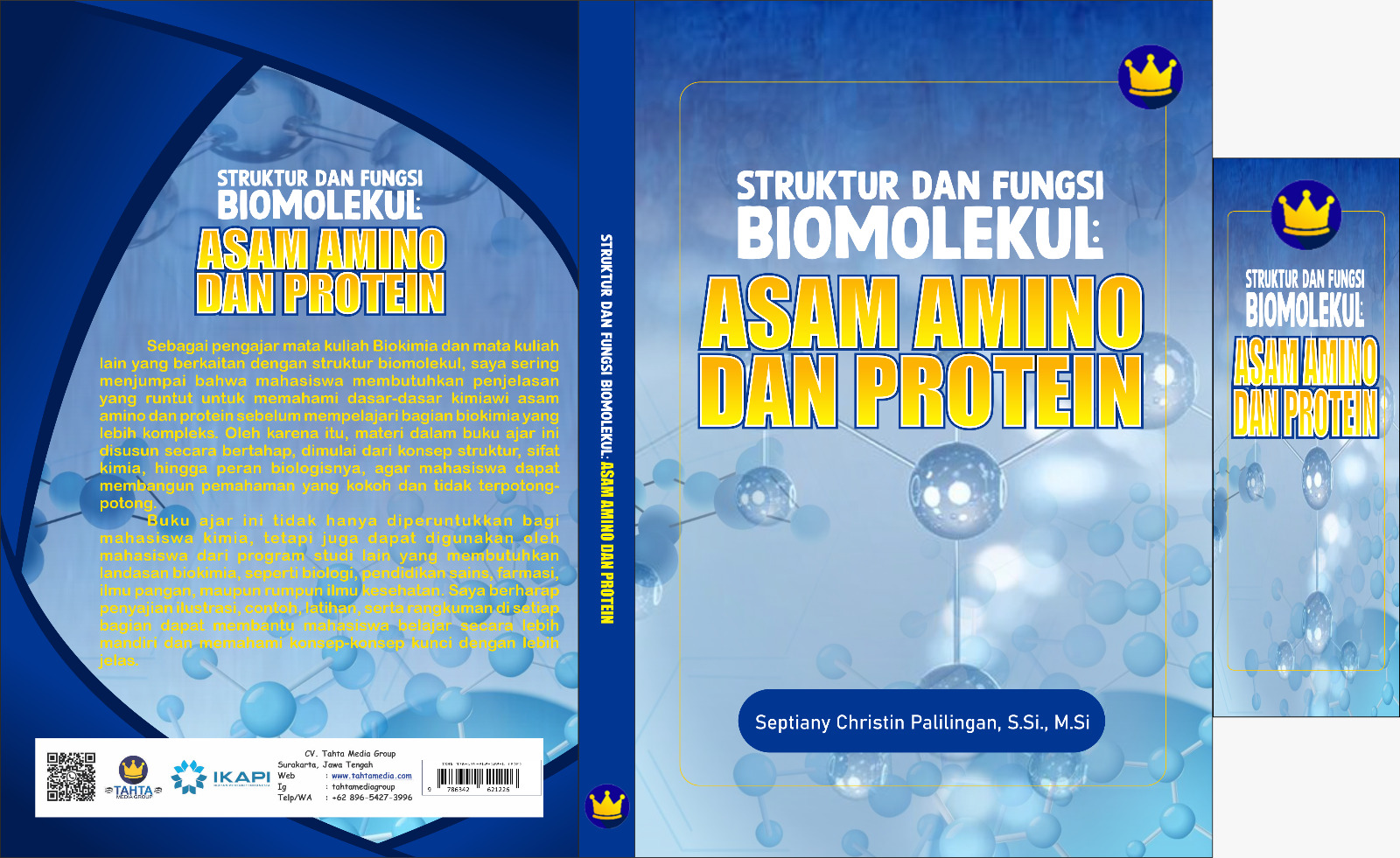 Buku ajar ini dirancang secara sistematis dan bertahap, dimulai dari pengenalan konsep dasar asam amino, karakteristik kimia dan fisiknya, stereokimia, sifat asam–basa, hingga pembentukan ikatan peptida dan struktur protein. Selain itu, buku ini juga mengaitkan konsep-konsep tersebut dengan contoh biologis dan klinis, sehingga diharapkan dapat membantu mahasiswa melihat keterkaitan antara teori biokimia dengan fenomena nyata dalam sistem kehidupan dan kesehatan manusia. Penyajian materi dilengkapi dengan tujuan pembelajaran, ilustrasi, tabel, serta latihan pemahaman untuk memperkuat proses belajar mandiri mahasiswa.