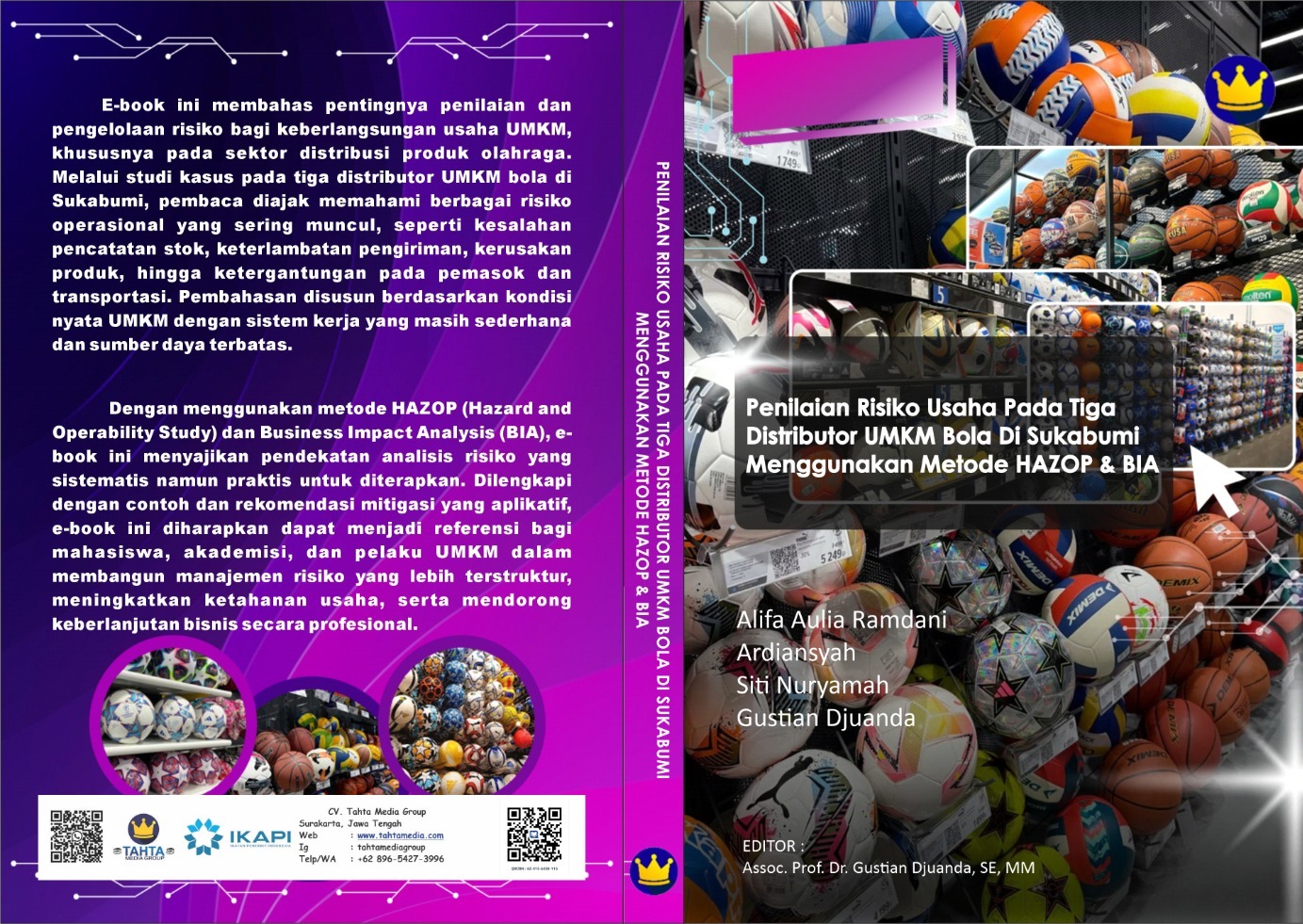 E-book ini membahas pentingnya penilaian dan pengelolaan risiko bagi keberlangsungan usaha UMKM, khususnya pada sektor distribusi produk olahraga. Melalui studi kasus pada tiga distributor UMKM bola di Sukabumi, pembaca diajak memahami berbagai risiko operasional yang sering muncul, seperti kesalahan pencatatan stok, keterlambatan pengiriman, kerusakan produk, hingga ketergantungan pada pemasok dan transportasi. Pembahasan disusun berdasarkan kondisi nyata UMKM dengan sistem kerja yang masih sederhana dan sumber daya terbatas.