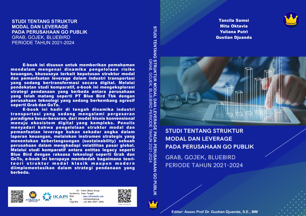 E-book ini disusun untuk memberikan pemahaman mendalam mengenai dinamika pengelolaan risiko keuangan, khususnya terkait keputusan struktur modal dan pemanfaatan leverage dalam industri transportasi yang sedang bertransformasi secara digital. Melalui pendekatan studi komparatif, e-book ini mengeksplorasi strategi pendanaan yang berbeda antara perusahaan yang telah matang seperti PT Blue Bird Tbk dengan perusahaan teknologi yang sedang berkembang agresif seperti Grab dan GoTo. E-book ini hadir di tengah dinamika industri transportasi yang sedang mengalami pergeseran paradigma besar-besaran, dari model bisnis konvensional menuju ekosistem digital yang kompleks. Penulis menyadari bahwa pengelolaan struktur modal dan pemanfaatan leverage bukan sekadar angka dalam laporan keuangan, melainkan instrumen strategis yang menentukan keberlangsungan (sustainability) sebuah perusahaan dalam menghadapi volatilitas pasar global. Melalui studi komparatif antara entitas legacy seperti Blue Bird dengan raksasa teknologi seperti Grab dan GoTo, e-book ini berupaya membedah bagaimana teori-teori struktur modal klasik maupun modern diimplementasikan dalam strategi pendanaan yang berbeda.