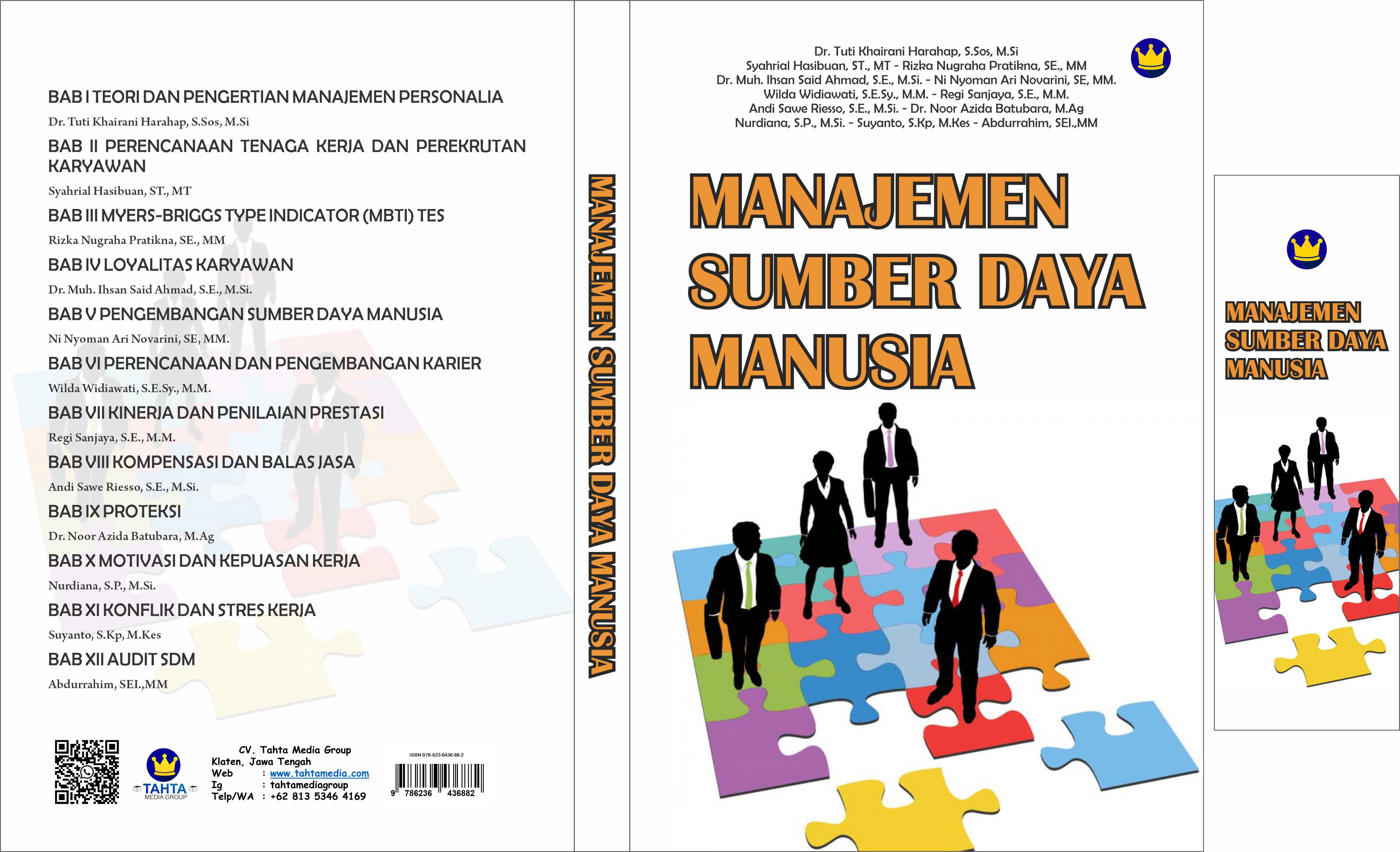 Buku dengan judul Manajemen Sumber Daya Manusia merupakan buku ajar yang disusun sebagai media pembelajaran, sumber referensi dan pedoman belajar bagi mahasiswa. Pokok-pokok bahasan dalam buku ini mencakup: 1) Teori dan Pengertian Manajemen Personalia, 2) Perencanaan Tenaga Kerja dan Perekrutan Karyawan, 3) Myers-Briggs Type Indicator (MBTI) Tes, 4) Loyalitas Karyawan, 5) Pengembangan Sumber Daya Manusia, 6) Perencanaan dan Pengembangan Karier, 7) Kinerja dan Penilaian Prestasi, 8) Kompensasi dan Balas Jasa, 9) Proteksi, 10) Motivasi dan Kepuasan Kerja, 11) Konflik dan Stres Kerja, 12) Audit SDM.