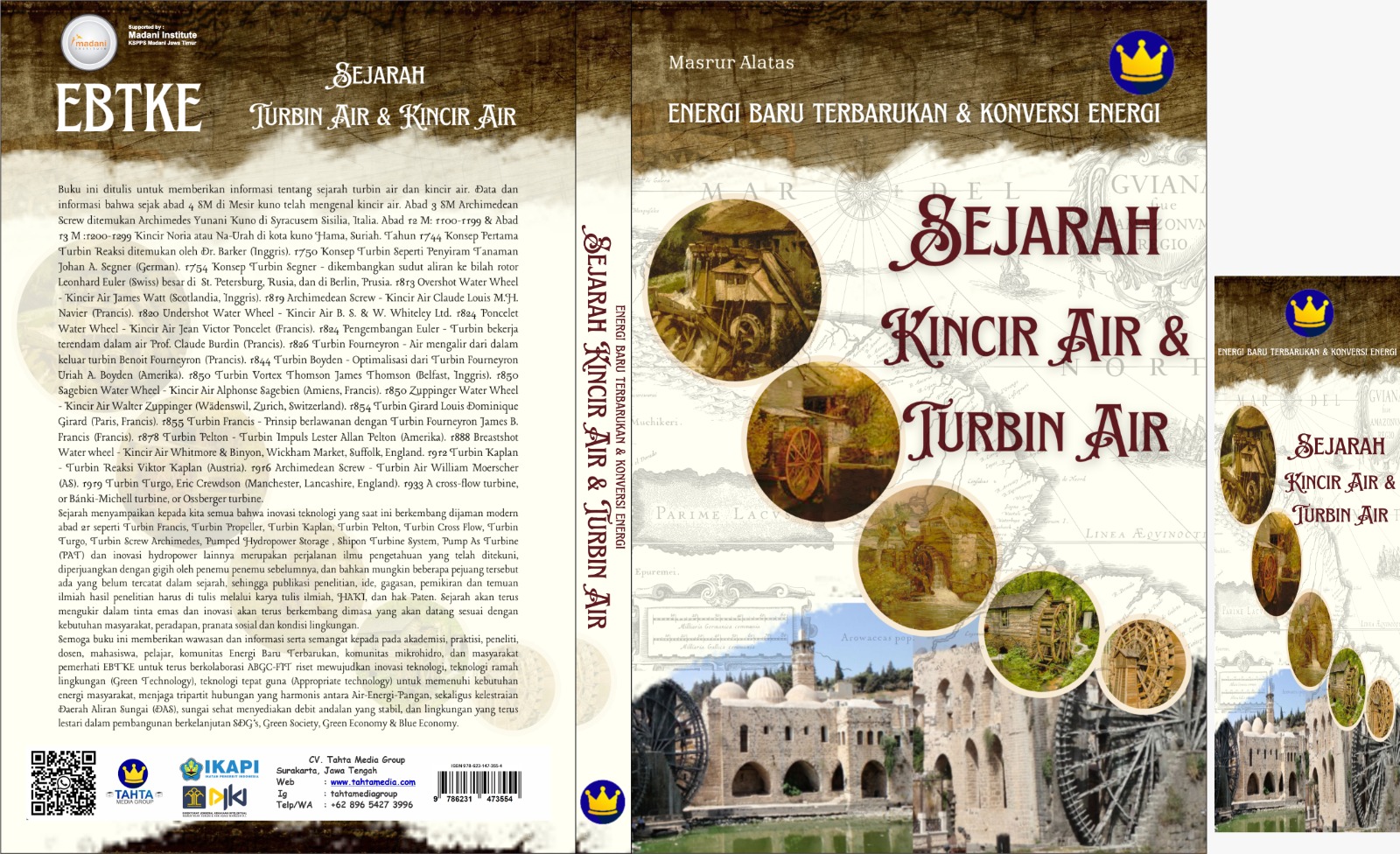 Buku ini ditulis untuk memberikan informasi tentang sejarah turbin air dan kincir air. Data dan informasi bahwa sejak abad 4 SM di Mesir kuno telah mengenal kincir air. Abad 3 SM Archimedean Screw ditemukan Archimedes Yunani Kuno di Syracusem Sisilia, Italia. Abad r2 М: гтоо-1199 & Abad 13 M:1200-1299 Kincir Noria atau Na-Urah di kota kuno Hama, Suriah. Tahun 1744 Konsep Pertama Turbin Reaksi ditemukan oleh Dr. Barker (Inggris). 1750 Konsep Turbin Seperti Penyiram Tanaman Johan A. Segner (German). 1754 Konsep Turbin Segner dikembangkan sudut aliran ke bilah rotor Leonhard Euler (Swiss) besar di St. Petersburg, Rusia, dan di Berlin, Prusia. 1813 Overshot Water Wheel - Kincir Air James Watt (Scotlandia, Inggris). r8r9 Archimedean Screw - Kincir Air Claude Louis M.H. Navier (Prancis). 1820 Undershot Water Wheel - Kincir Air B. S. & W. Whiteley Ltd. 1824 Poncelet Water Wheel - Kincir Air Jean Victor Poncelet (Francis). 1824 Pengembangan Euler - Turbin bekerja terendam dalam air Prof. Claude Burdin (Prancis). 1826 Turbin Fourneyron Air mengalir dari dalam keluar turbin Benoit Fourneyron (Prancis). 1844 Turbin Boyden - Optimalisasi dari Turbin Fourneyron Uriah A. Boyden (Amerika). 1850 Turbin Vortex Thomson James Thomson (Belfast, Inggris). 1850 Sagebien Water Wheel - Kincir Air Alphonse Sagebien (Amiens, Francis). 1850 Zuppinger Water Wheel - Kincir Air Walter Zuppinger (Wädenswil, Zurich, Switzerland). 1854 Turbin Girard Louis Dominique Girard (Paris, Francis). 1855 Turbin Francis - Prinsip berlawanan dengan Turbin Fourneyron James B. Francis (Francis). 1878 Turbin Pelton - Turbin Impuls Lester Allan Pelton (Amerika). 1888 Breastshot Water wheel - Kincir Air Whitmore & Binyon, Wickham Market, Suffolk, England. r9r2 Turbin Kaplan - Turbin Reaksi Viktor Kaplan (Austria). r9r6 Archimedean Screw Turbin Air William Moerscher (AS). 1919 Turbin Turgo, Eric Crewdson (Manchester, Lancashire, England). 1933 A cross-flow turbine, or Bánki-Michell turbine, or Ossberger turbine.